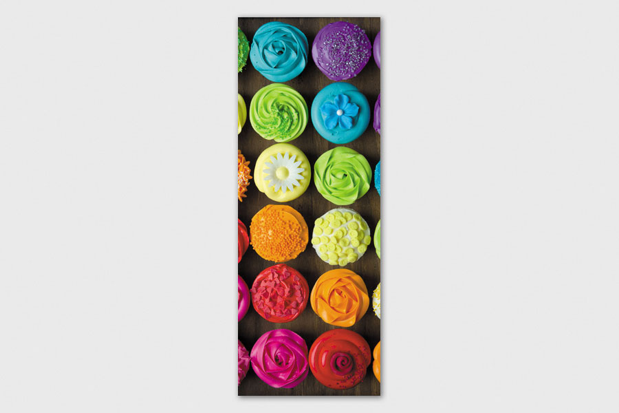 Υφασμάτινο αυτοκόλλητο ψυγείου που απεικονίζει cup cakes με σαντιγί σε διάφορα χρώματα και σχέδια.