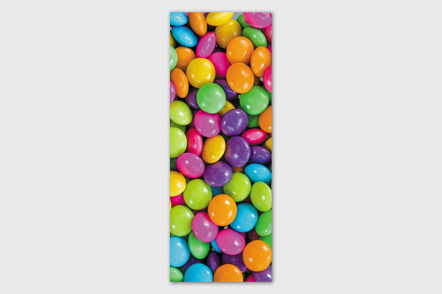 Υφασμάτινο αυτοκόλλητο ψυγείου που απεικονίζει καραμελάκια σε διάφορα χρώματα.