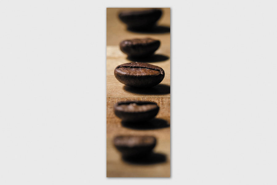 Υφασμάτινο αυτοκόλλητο ψυγείου που απεικονίζει ακατέργαστους κόκκους καφέ πάνω σε μια ξύλινη επιφάνεια.