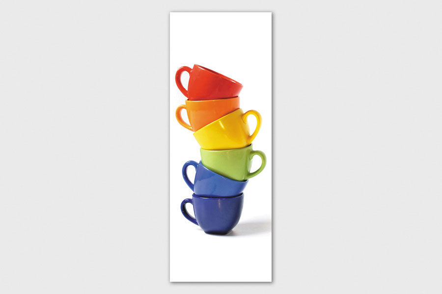 Υφασμάτινο αυτοκόλλητο ψυγείου που απεικονίζει έξι κούπες η μία μέσα στην άλλη σε διάφορα χρώματα.