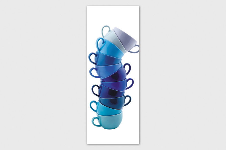 Υφασμάτινο αυτοκόλλητο ψυγείου που απεικονίζει ένετεκα κούπες η μία μέσα στην άλλη σε αποχρώσεις του μπλε και του γαλάζιου.