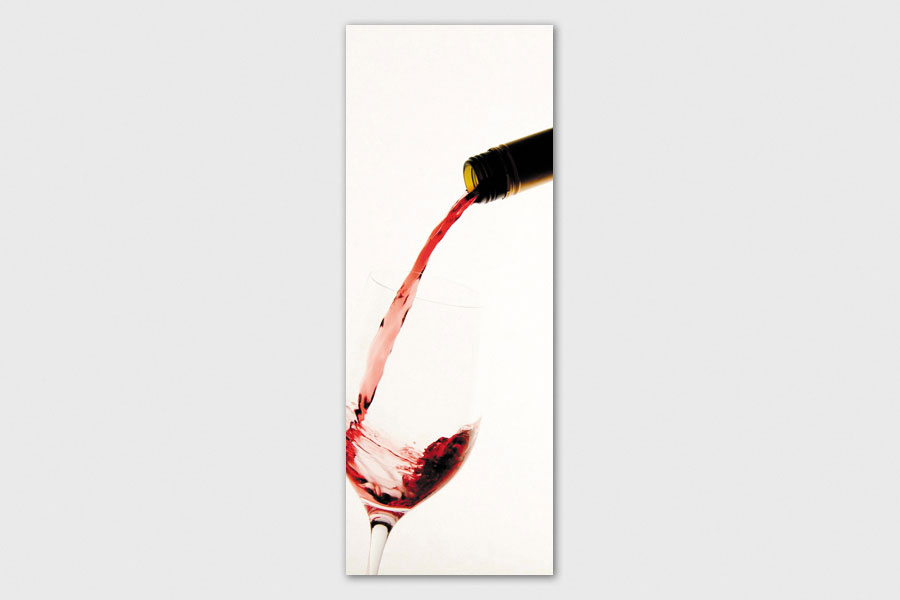 Υφασμάτινο αυτοκόλλητο ψυγείου που απεικονίζει ένα ποτήρι που γεμίζει με κόκκινο κρασί σε λευκό φόντο.