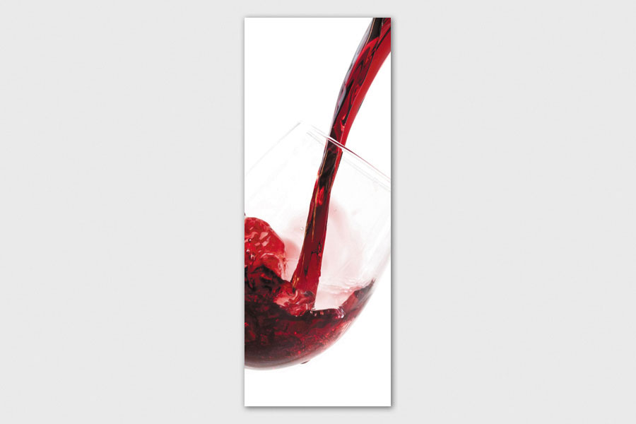 Υφασμάτινο αυτοκόλλητο ψυγείου που απεικονίζει ένα ποτήρι που γεμίζει με κόκκινο κρασί σε λευκό φόντο.