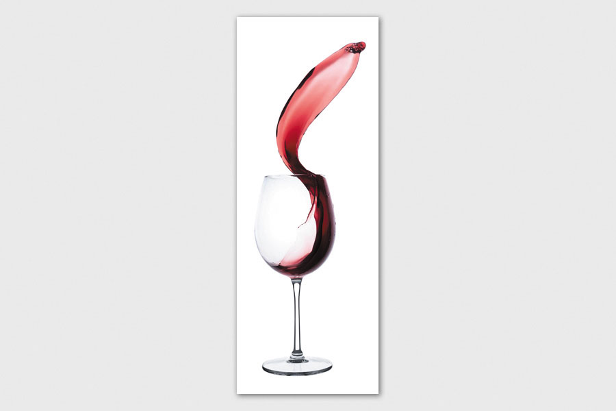 Υφασμάτινο αυτοκόλλητο ψυγείου που απεικονίζει ένα ποτήρι με κόκκινο κρασί σε λευκό φόντο.