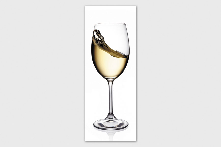 Υφασμάτινο αυτοκόλλητο ψυγείου που απεικονίζει ένα ποτήρι με λευκό κρασί σε λευκό φόντο.