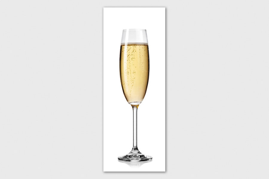 Υφασμάτινο αυτοκόλλητο ψυγείου που απεικονίζει ένα ποτήρι με σαμπάνια σε λευκό φόντο.