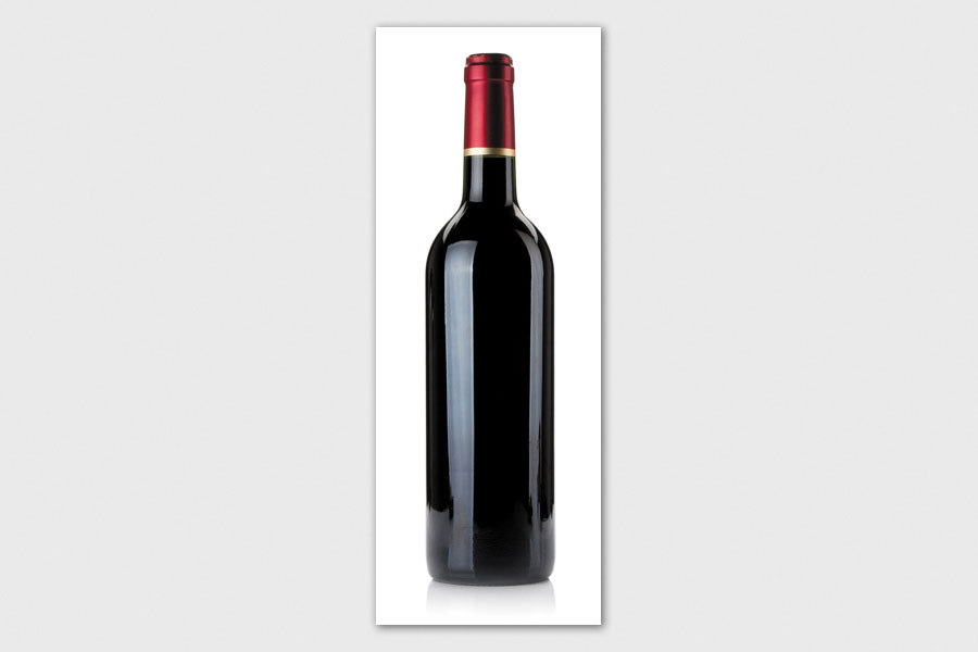 Υφασμάτινο αυτοκόλλητο ψυγείου που απεικονίζει ένα μπουκάλι με κόκκινο κρασί σε λευκό φόντο.