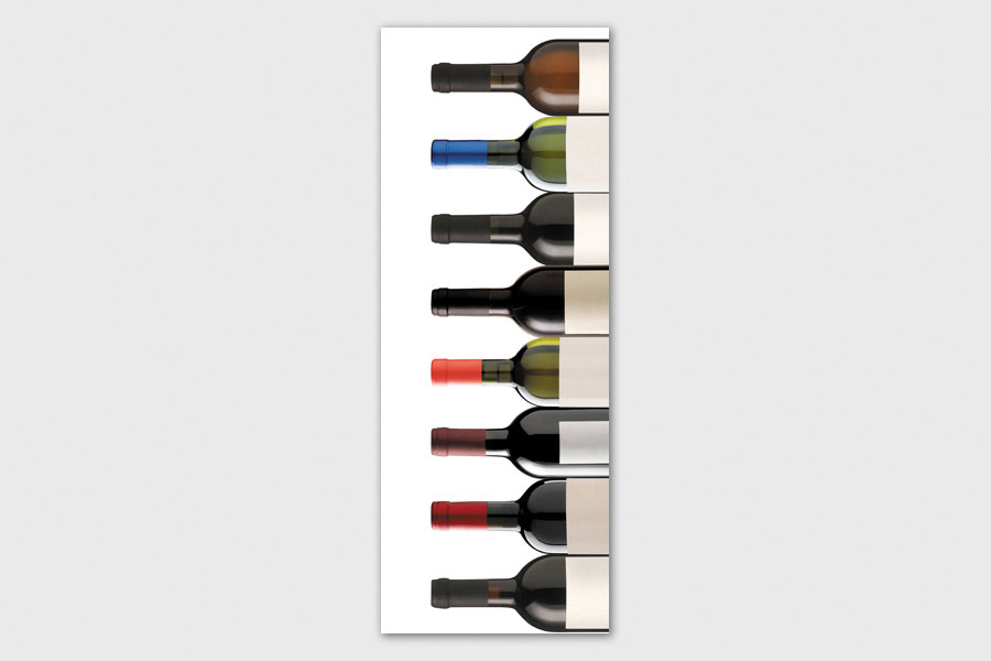 Υφασμάτινο αυτοκόλλητο ψυγείου που απεικονίζει μπουκάλια με διάφορα κρασιά και χρώματα σε λευκό φόντο.