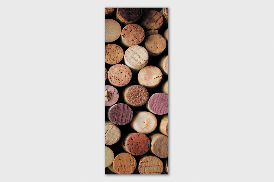 Υφασμάτινο αυτοκόλλητο ψυγείου που απεικονίζει διάφορους φελούς από μπουκάλια κρασί.