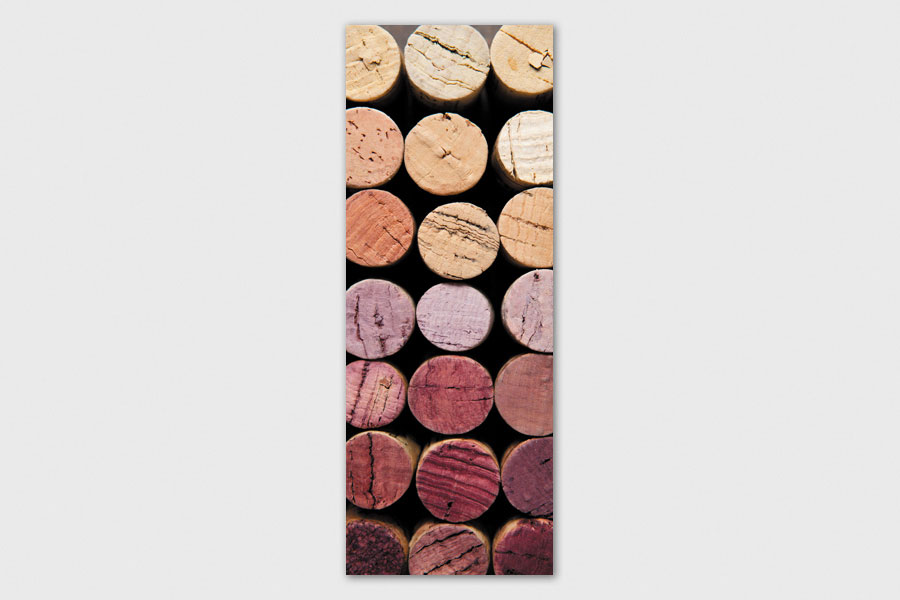 Υφασμάτινο αυτοκόλλητο ψυγείου που απεικονίζει διάφορους φελούς από μπουκάλια κρασί.