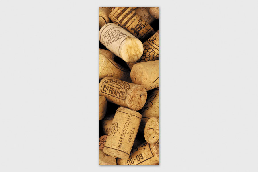 Υφασμάτινο αυτοκόλλητο ψυγείου που απεικονίζει διάφορους φελούς από μπουκάλια κρασί.