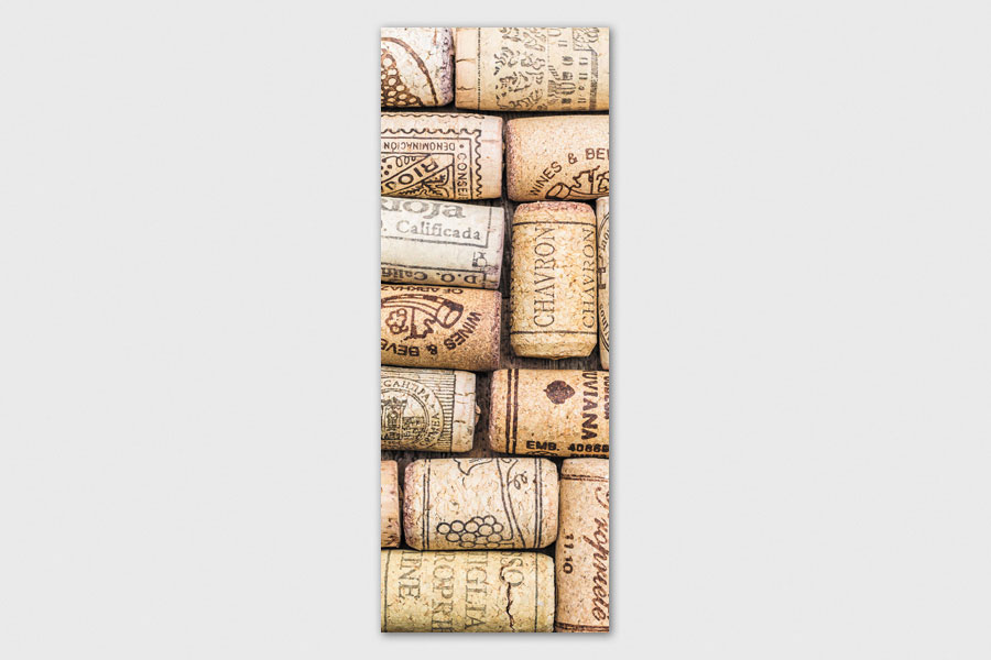 Υφασμάτινο αυτοκόλλητο ψυγείου που απεικονίζει διάφορους φελούς από μπουκάλια κρασί.