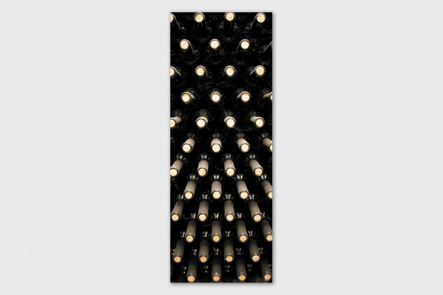 Υφασμάτινο αυτοκόλλητο ψυγείου που απεικονίζει μπουκάλια κρασί.