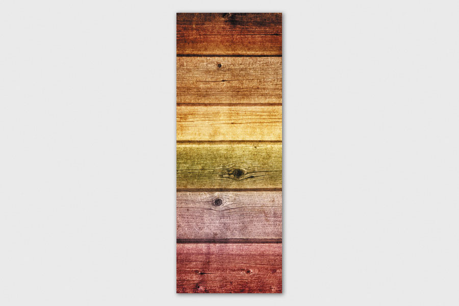 Υφασμάτινο αυτοκόλλητο ψυγείου που απεικονίζει οριζόντια κομμάτια ξύλου σε διάφορους χρωματισμούς.
