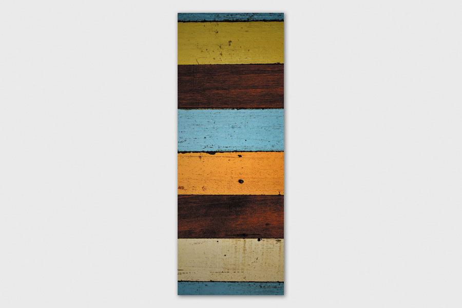 Υφασμάτινο αυτοκόλλητο ψυγείου που απεικονίζει οριζόντια κομμάτια ξύλου σε διάφορους χρωματισμούς.