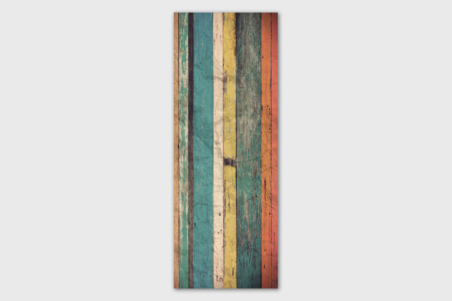 Υφασμάτινο αυτοκόλλητο ψυγείου που απεικονίζει κάθετα κομμάτια ξύλου σε διάφορους χρωματισμούς.
