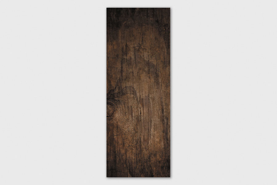 Υφασμάτινο αυτοκόλλητο ψυγείου που απεικονίζει ένα κομμάτι ξύλο με νερά σε σκούρο καφέ χρώμα.