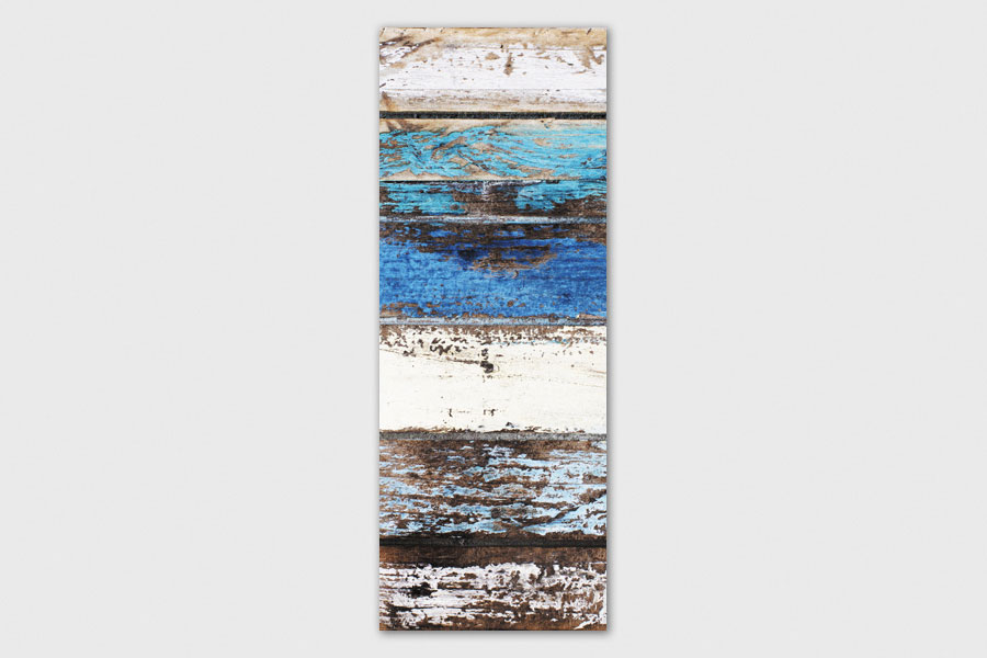 Υφασμάτινο αυτοκόλλητο ψυγείου που απεικονίζει οριζόντια κομμάτια ξύλου σε διάφορους χρωματισμούς.