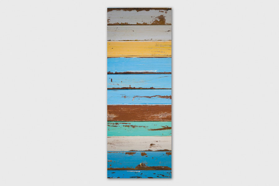 Υφασμάτινο αυτοκόλλητο ψυγείου που απεικονίζει οριζόντια κομμάτια ξύλου σε διάφορους χρωματισμούς.