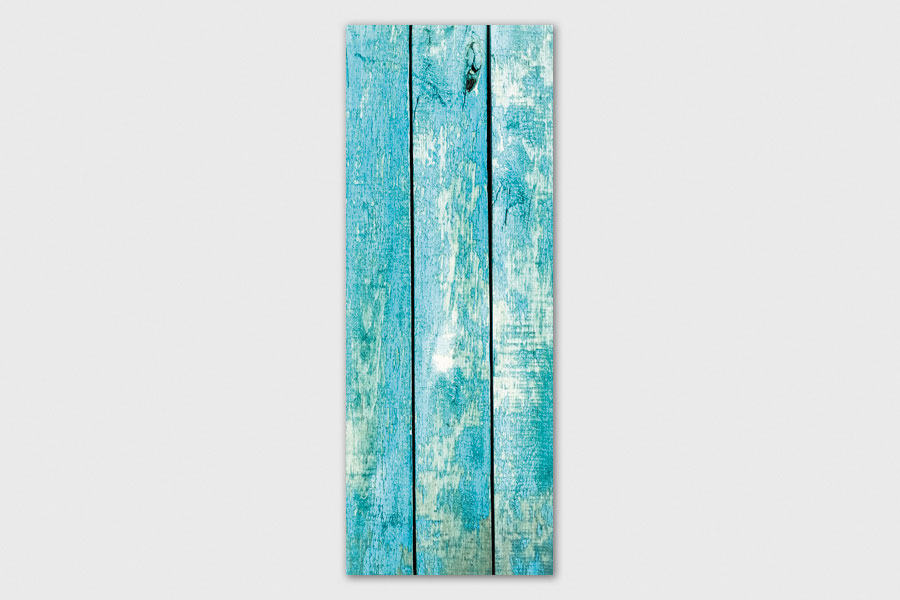 Υφασμάτινο αυτοκόλλητο ψυγείου που απεικονίζει κάθετα κομμάτια ξύλου σε γαλάζιους χρωματισμούς.