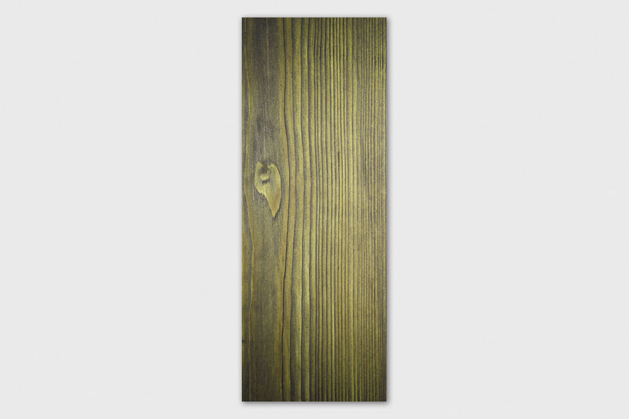 Υφασμάτινο αυτοκόλλητο ψυγείου που απεικονίζει κάθετα κομμάτια ξύλου σε σκούρο πράσινο χρωματισμούς.