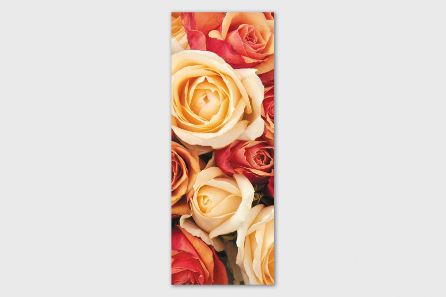 Υφασμάτινο αυτοκόλλητο ψυγείου που απεικονίζει τριαντάφυλλα σε διάφορα χρώματα.