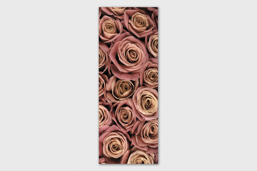 Υφασμάτινο αυτοκόλλητο ψυγείου που απεικονίζει τριαντάφυλλα σε ροζ χρώματα.