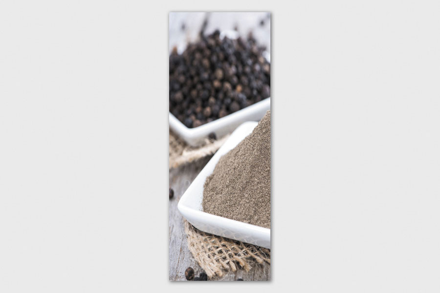 Υφασμάτινο αυτοκόλλητο ψυγείου που απεικονίζει 2 λευκά μπολ, ένα με κόκκους πιπεριού και ένα με τριμένο πιπέρι.