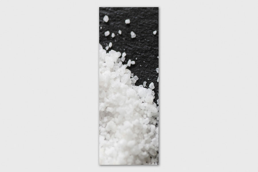 Υφασμάτινο αυτοκόλλητο ψυγείου που απεικονίζει χοντρό αλάτι σε μαύρη επιφάνεια.
