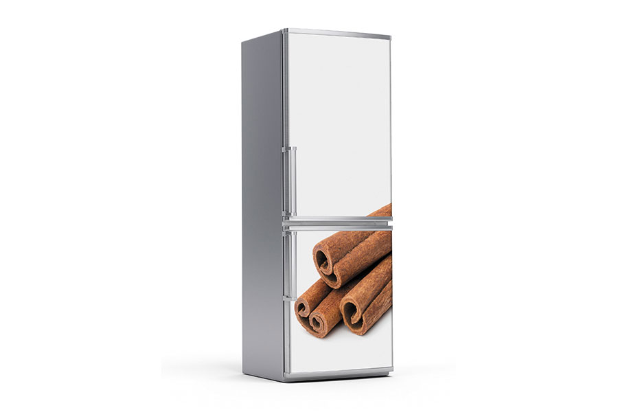Υφασμάτινο αυτοκόλλητο ψυγείου που απεικονίζει ξυλάκια κανέλα σε λευκό φόντο .