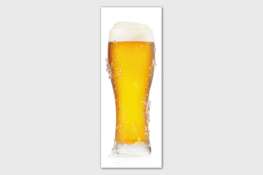 Υφασμάτινο αυτοκόλλητο ψυγείου που απεικονίζει ένα ποτήρι μπύρα με αφρό και με κομμάτια πάγο πάνω του.