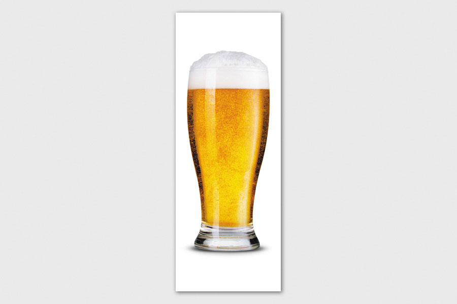 Υφασμάτινο αυτοκόλλητο ψυγείου που απεικονίζει ένα ποτήρι μπύρα με αφρό.