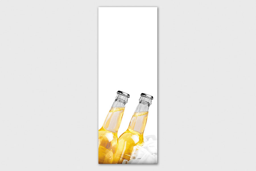 Υφασμάτινο αυτοκόλλητο ψυγείου που απεικονίζει δυο λευκά μπουκάλια μπύρα μέσα σε παγάκια.