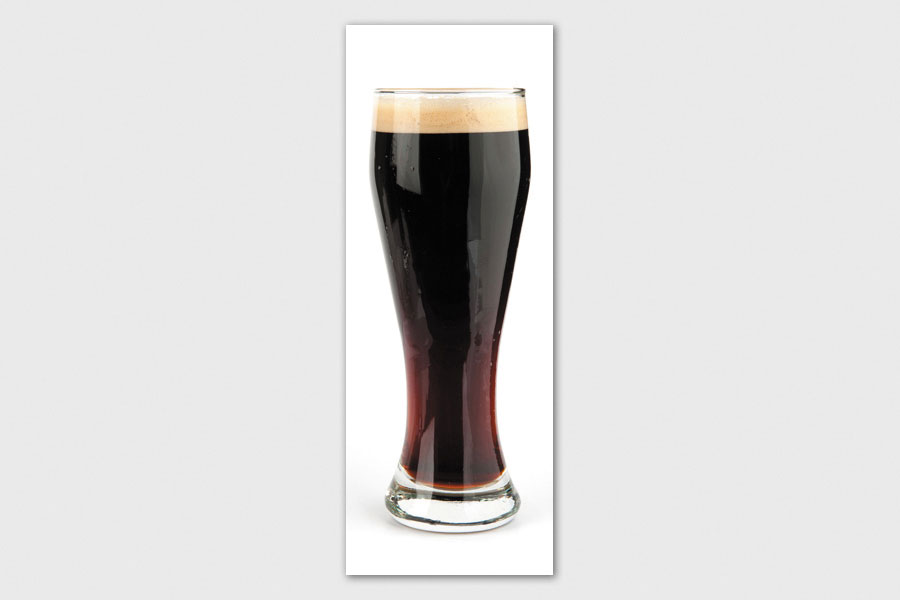 Υφασμάτινο αυτοκόλλητο ψυγείου που απεικονίζει ένα ποτήρι μαύρη μπύρα με αφρό.