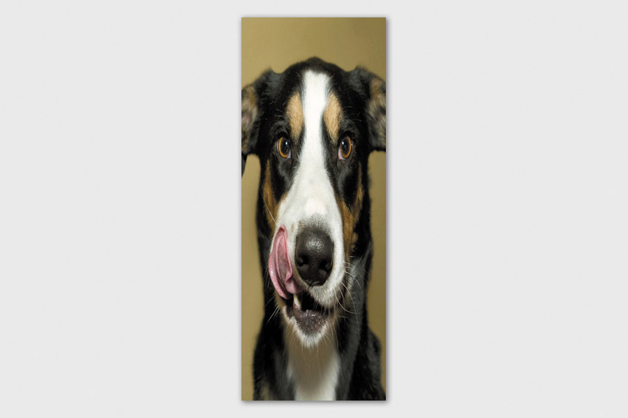 Υφασμάτινο αυτοκόλλητο ψυγείου που απεικονίζει ένα σκυλάκι.