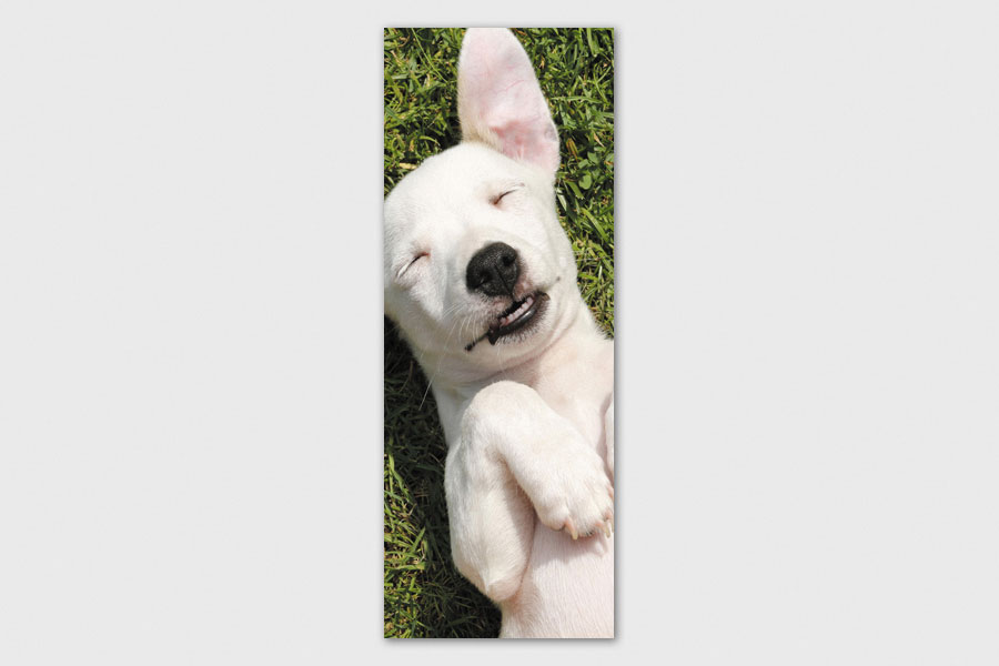 Υφασμάτινο αυτοκόλλητο ψυγείου που απεικονίζει ένα σκυλάκι.