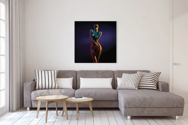 Αυτός ο υπέροχος πίνακας σε καμβά ανήκει στην κατηγορία των αισθησιακών εικόνων, όπου η φωτογραφία αποδίδει μια ευαισθησία και εκφραστικότητα που μπορεί να μαγνητίσει τον θεατή. Το έργο εστιάζει στην ανατομία της ανθρώπινης μορφής, εξετάζοντας τη σχέση του σώματος με την αισθητική και τον σύγχρονο πολιτισμό. Η προσεκτική χρήση του φωτός και των σκιάσεων, σε συνδυασμό με την ψηλή ανάλυση της φωτογραφικής εκτύπωσης, αναδεικνύει την υφή και την αίσθηση βάθους.