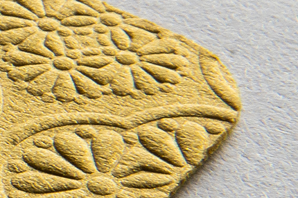 Η πρώτη όψη θερμοτυπία και αναγλυφοτυπία και η δεύτερη με εκτύπωση ένα χρώμα.