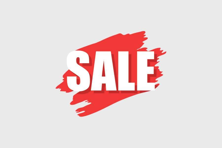Αυτοκόλλητο βιτρίνας από βινύλιο που απεικονίζει μια κόκκινη πινελιά και τη λέξη "SALE" με λευκά γράμματα.