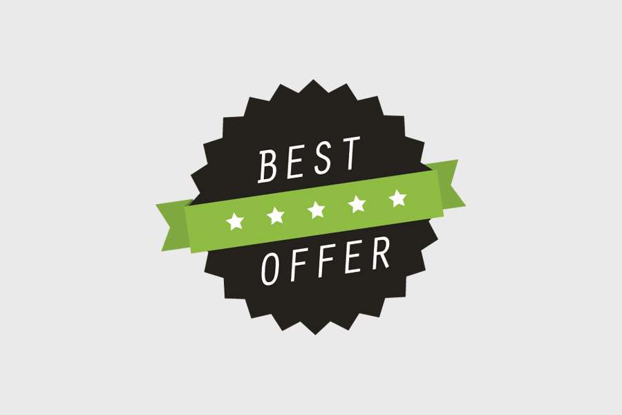 Αυτοκόλλητο βιτρίνας από βινύλιο που απεικονίζει ένα μαύρο αυτοκόλλητο με ένα πράσινο banner με αστέρια στη μέση και τη φράση "BEST OFFER" με λευκά γράμματα.