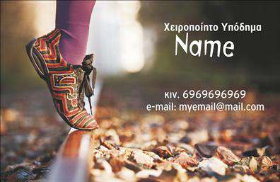 Είναι σημαντικό για ένα κατάστημα υποδημάτων να έχει μια επαγγελματική κάρτα που θα προβάλλει το brand του. Μια ποιοτική κάρτα θα δημιουργήσει θετική εντύπωση στους πελάτες και θα ενισχύσει την αξιοπιστία του καταστήματος. Εκτυπώστε επαγγελματικές κάρτες με εντυπωσιακό σχεδιασμό και δείξτε την επαγγελματικότητα της επιχείρησής σας. Μπορείτε να περιλάβετε πληροφορίες για τις υπηρεσίες σας και τον τρόπο παραγγελίας, καθώς και εικόνες από τα προϊόντα σας. Μην ξεχνάτε να συμπεριλάβετε το λογότυπό σας και τα στοιχεία επικοινωνίας σας.