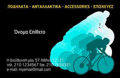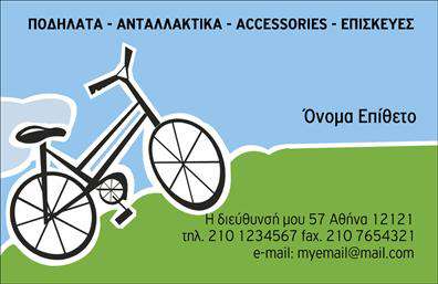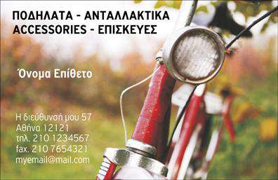 Η επαγγελματική κάρτα σας μπορεί να βοηθήσει να δώσετε μια επαγγελματική και στιλάτη εικόνα στην επιχείρησή σας. Στον κλάδο των ποδηλατών, μπορείτε να δώσετε έμφαση στα στοιχεία επικοινωνίας σας, όπως η διεύθυνση του καταστήματος και τον αριθμό τηλεφώνου. Μπορείτε επίσης να προσθέσετε λογότυπο και εικόνες ποδηλάτων για να δώσετε μια εικόνα του επαγγέλματός σας.