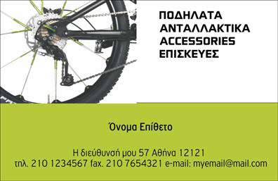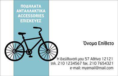 Η επαγγελματική κάρτα σας μπορεί να βοηθήσει να δώσετε μια επαγγελματική και στιλάτη εικόνα στην επιχείρησή σας. Στον κλάδο των ποδηλατών, μπορείτε να δώσετε έμφαση στα στοιχεία επικοινωνίας σας, όπως η διεύθυνση του καταστήματος και τον αριθμό τηλεφώνου. Μπορείτε επίσης να προσθέσετε λογότυπο και εικόνες ποδηλάτων για να δώσετε μια εικόνα του επαγγέλματός σας.