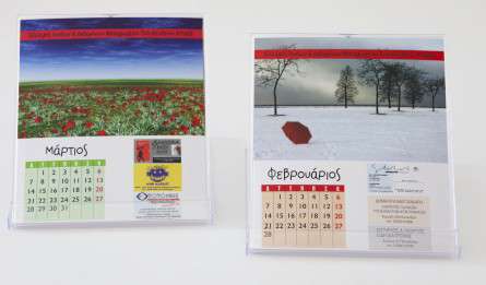 Επιτραπέζιο Ημερολόγιο σε πλαστική θήκη 13 φύλλων έγχρωμο σε χαρτί 170γρ σε πλαστική θήκη 9,5εκ.x9,5εκ