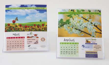 Τα επιτραπέζια ημερολόγια είναι ένα πρακτικό και λειτουργικό δώρο που μπορεί να χαρίσει κανείς στους συνεργάτες του ή στους πελάτες του. Στο τυπογραφείο μας, προσφέρουμε εκτυπώσεις επιτραπέζιων ημερολογίων σε διάφορα μεγέθη και σχέδια, με τη δυνατότητα επιλογής υλικού και φινιρίσματος. Επίσης, προσφέρουμε επιλογές εκτύπωσης σε ημερολόγια σε καμβά, ψηφιακά εκτυπωμένα, σουπλά και φυλλάδια. Είμαστε διαθέσιμοι για να σας βοηθήσουμε να σχεδιάσετε το ιδανικό επιτραπέζιο ημερολόγιο που θα κάνει την εταιρική σας δωροεπιταγή ξεχωριστή. Επικοινωνήστε μαζί μας για περισσότερες πληροφορίες και προσφορές.