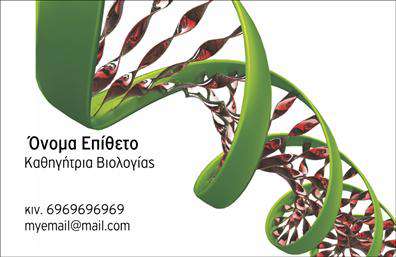Οι επαγγελματικές μας κάρτες για βιολόγους είναι η καλύτερη επιλογή για να παρουσιάσετε την επαγγελματική σας ταυτότητα στους πελάτες και συνεργάτες σας. Στην Orasi Graphic Arts προσφέρουμε εκτυπώσεις με την υψηλότερη ποιότητα σε χαρτιά που αντέχουν στο χρόνο και στη χρήση. Μπορούμε να δημιουργήσουμε μοναδικά και εξατομικευμένα σχέδια που θα αντικατοπτρίζουν τον επαγγελματισμό και την κομψότητα της επιχείρησής σας. Επικοινωνήστε μαζί μας για να δημιουργήσουμε την κάρτα που σας ταιριάζει καλύτερα.