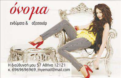 Επαγγελματικές κάρτες για τον κλάδο των αξεσουάρ μπορούν να προωθήσουν το brand και να βοηθήσουν στην δημιουργία επαφών με νέους πελάτες. Επιλέξτε κάρτες που ταιριάζουν στον στυλ και το branding της επιχείρησής σας και επιλέξτε κομψά, σαφή σχέδια. Προσθέστε το λογότυπο της εταιρείας σας και τα στοιχεία επικοινωνίας σας, όπως το όνομα, τον τίτλο και τον αριθμό τηλεφώνου. Μια καλή σχεδίαση κάρτας μπορεί να κάνει μια μεγάλη διαφορά στην προώθηση της επιχείρησής σας και στην δημιουργία πελατειακής βάσης.