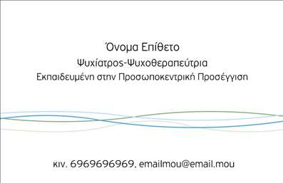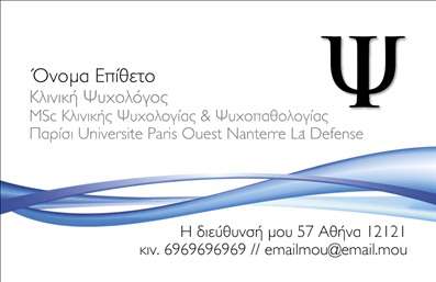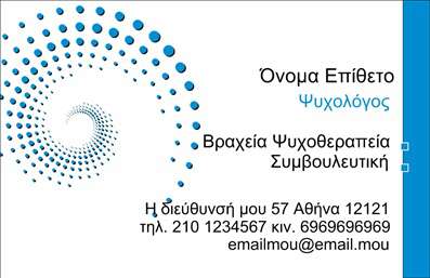 Οι επαγγελματικές κάρτες είναι σημαντικές για την προβολή των ψυχοθεραπευτών και των υπηρεσιών τους. Με τη χρήση ενός ελκυστικού και επαγγελματικού σχεδιασμού και στοιχείων, μπορείτε να δημιουργήσετε μια εντυπωσιακή κάρτα που θα κάνει τους πελάτες σας να θυμούνται το όνομά σας. Προσθέτοντας τις πληροφορίες επικοινωνίας και τα ειδικά σας ενδιαφέροντα, μπορείτε να δείξετε στους πελάτες σας πώς μπορείτε να τους βοηθήσετε στη διαδικασία της ψυχοθεραπείας. Επιλέξτε μια κάρτα με μοντέρνο και καθαρό σχεδιασμό, που θα αντανακλά την επαγγελματική σας προσωπικότητα και τις υπηρεσίες σας.