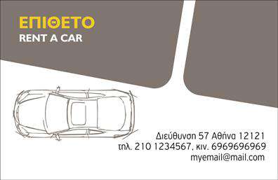 Οι επαγγελματικές κάρτες για εταιρείες ενοικιάσεων αυτοκινήτων είναι ένα απαραίτητο εργαλείο για την ανάπτυξη της επιχείρησής σας. Με μια επαγγελματική κάρτα μπορείτε να παρουσιάσετε τα στοιχεία επικοινωνίας σας στους πελάτες σας, να δώσετε μια επαγγελματική εικόνα στην εταιρεία σας και να ενισχύσετε την αξιοπιστία σας στην αγορά. Συμπεριλαμβάνετε στην κάρτα σας το λογότυπο της εταιρείας σας, το όνομα σας, τον τίτλο σας, τον αριθμό τηλεφώνου και τη διεύθυνση email σας. Επιπλέον, μπορείτε να συμπεριλάβετε και μια μικρή περιγραφή των υπηρεσιών σας, για να ενθαρρύνετε τους πελάτες σας να σας επιλέξουν για τις ανάγκες τους σε ενοικιάσεις αυτοκινήτων.