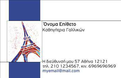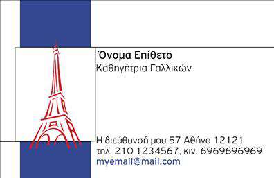 Η επαγγελματική κάρτα ενός Γαλλικού καθηγητή αποτελεί έναν σημαντικό τρόπο να προβάλλει τις δεξιότητές του και να ενισχύσει την επαγγελματική του εικόνα. Επιλέξτε μια επαγγελματική κάρτα με κομψό και κλασικό σχεδιασμό, τοποθετώντας το όνομα και το επίθετό σας σε μεγάλα γράμματα και διατηρώντας απλό και καθαρό το υπόλοιπο κείμενο. Συμπεριλάβετε τη θέση σας και τα ειδικά ενδιαφέροντά σας στον τομέα της γαλλικής γλώσσας, καθώς και τον αριθμό τηλεφώνου και τη διεύθυνση email σας για εύκολη επικοινωνία.